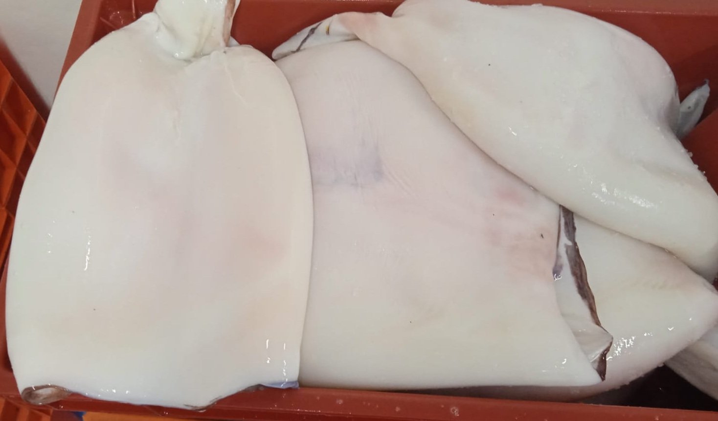 Calamar de gran tamaño con carne firme y versátil, ideal para múltiples preparaciones culinarias.